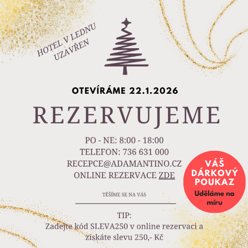 DÁRKOVÉ POUKAZY objednávejte na tel. 733 677 016, 736 631 000, nebo na e-mailové adrese recepce@adamantino.cz
